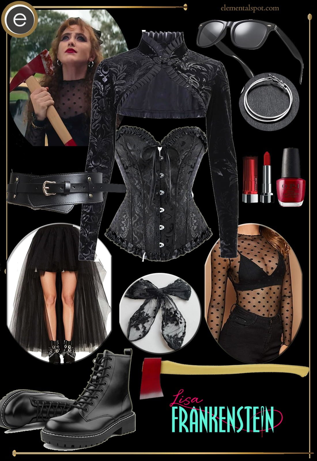 With these pieces combined, you’ll perfectly capture Lisa’s rebellious spirit. Tease your hair high, strap on those combat boots, and you’re ready for a night of dancing with the undead!