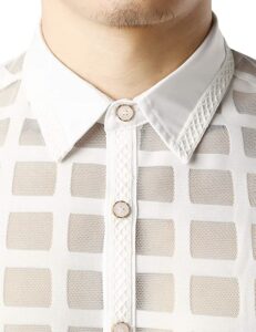 We all love characters who experiment with different styles. Safe to say, Rico is one of those characters! You can spot him wearing a collared off-white net shirt over a white vest and a gold lion pendant. This vintage 80s-style shirt is trendy but doesn’t compromise his tough drug dealer appearance. We have found a similar front-open collared shirt in a more trendy color for you to style.