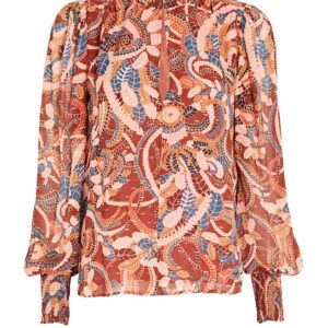 Paisley Long Sleeve Silk Blouse In Brown worn by Martha Croker (Diane Lane) as seen in A Man in Full