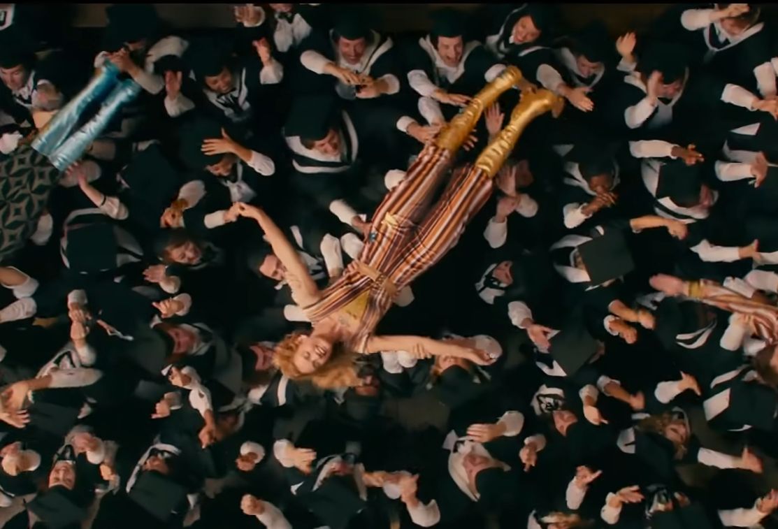 All the main characters emerge to dance at the end of the second film dressed entirely in Abba-inspired attire, continuing the oddly appealing identical choice made for the first film.