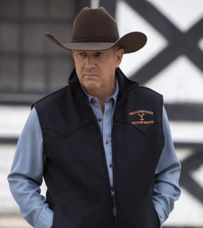 The lead in the series has been equipped with various jacket styles. Unlike Rip Wheeler, who wore only one black outer, John donned a collection of Yellowstone outfits, including this black ranch vest.