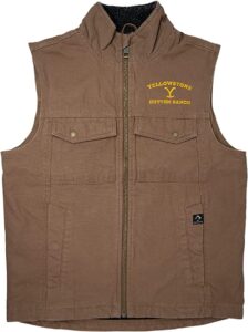 The western cowboy apparel is incomplete without a stylish vest, and Dutton is no exception. He has a traditional brown vest with a shirt collar and a zip closure, which he frequently sports underneath the aforementioned beige jacket.